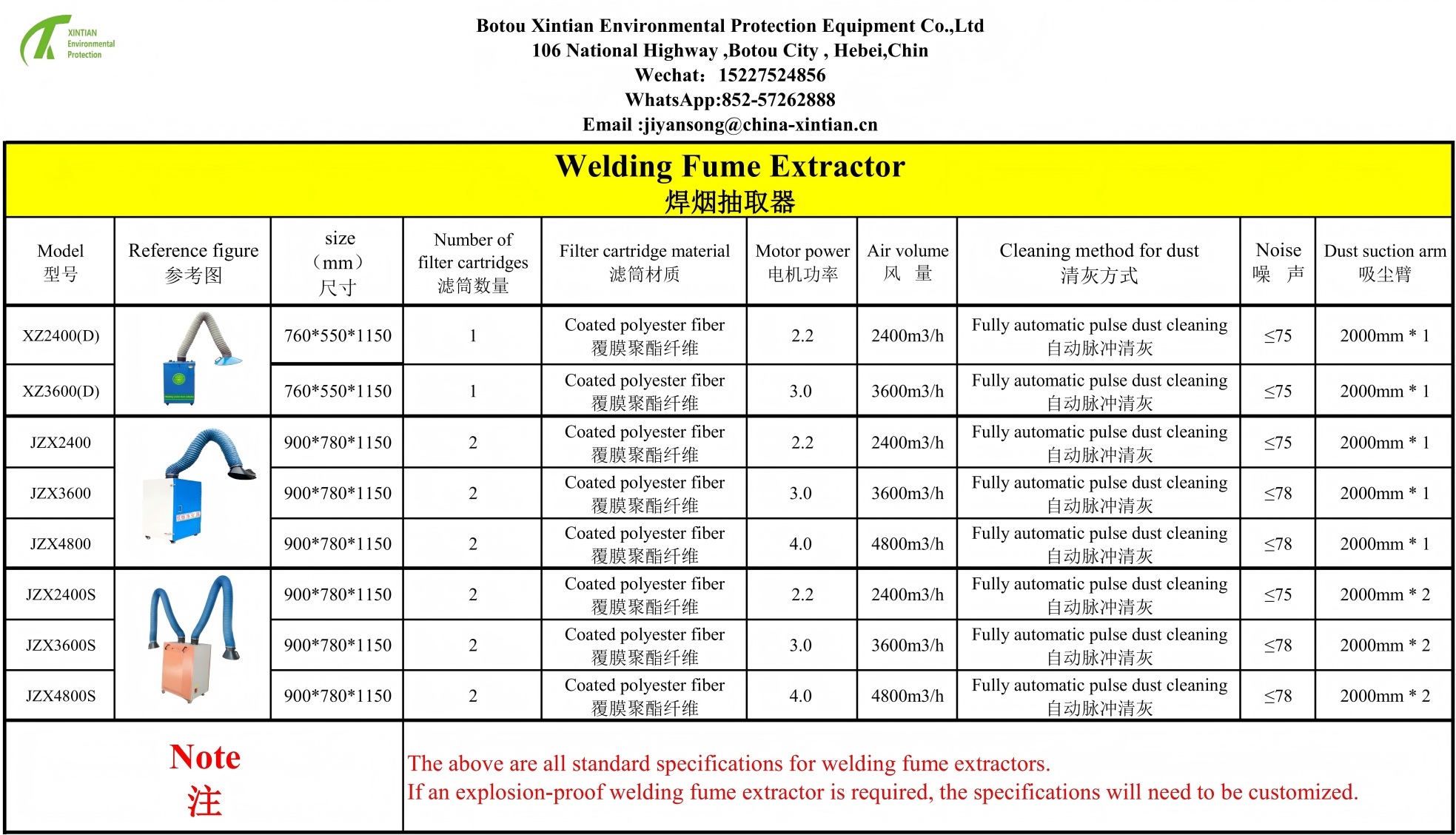 이 장비는 소규모 개별 용접 작업을 위한 첫 번째 선택이며 자동차 수리점 및 소규모 금속 가공 공장의 수동 아크 용접에 적합합니다. 캐스터와 2~3미터의 전방향 흡입 암을 갖추고 있어 360° 회전이 가능하고 용접 지점의 정확한 위치 지정이 가능하여 연기를 포착할 수 있습니다. 플러그 앤 플레이 방식이므로 복잡한 설치가 필요하지 않습니다. 정전기 방지 필름 코팅이 된 필터 요소는 0.1μm보다 큰 금속 입자에 대해 99% 이상의 유지 효율을 갖습니다. 또한 필터 매체를 자동으로 청소하는 펄스 제트 청소 시스템도 있습니다.